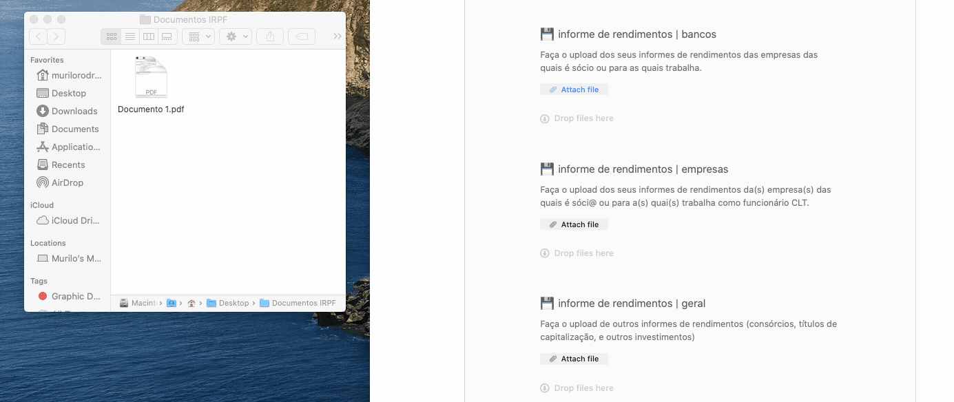 para anexar seus arquivos, arraste-os para cima do campo desejado: